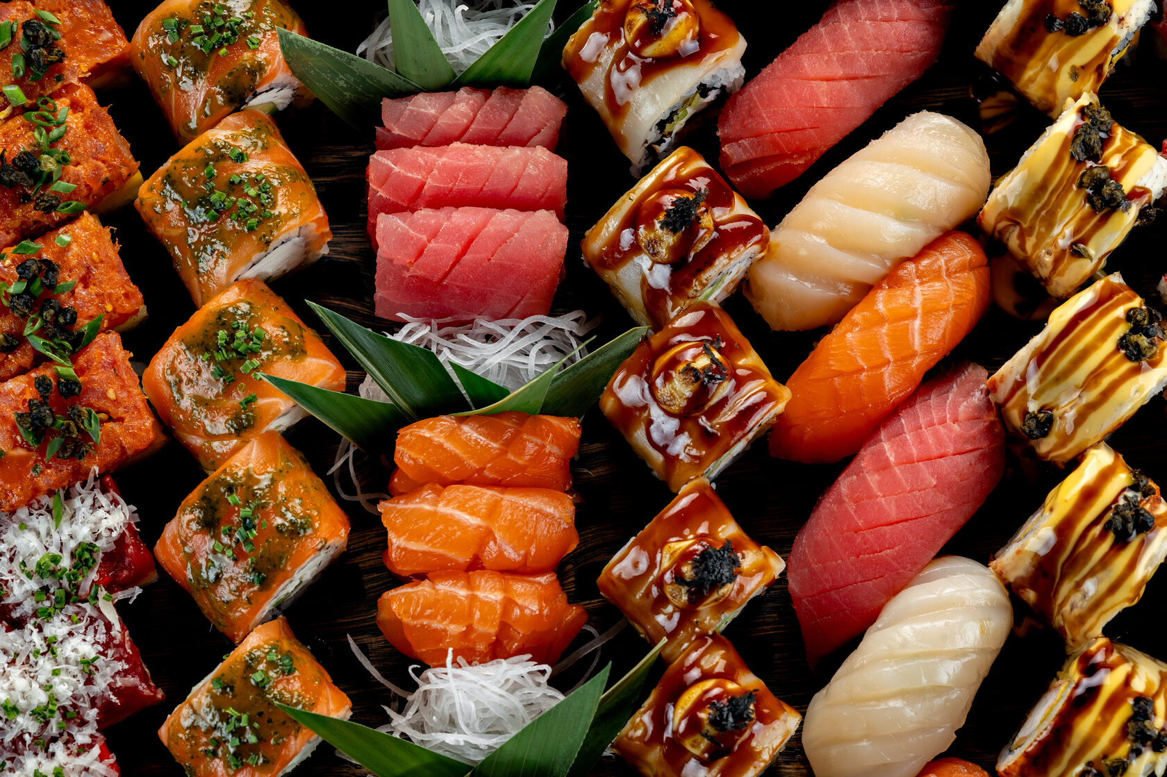 Роллы Гамберо, Торуофу и Сякэ формируют динамику сета.